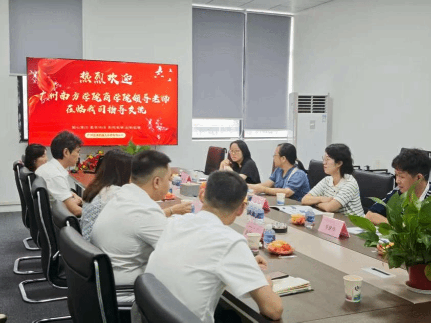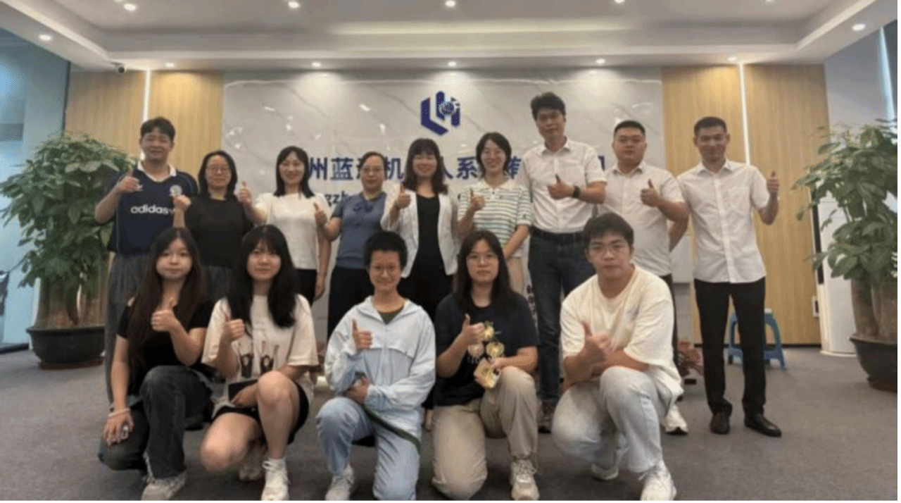 为深入推进产教融合、协同育人,8月7日上午,广州南方学院商学院数字经济专业主任周瑛副教授、经济学专业任晓丽老师及数字经济专业韦健伟、黄小丽、刘东君老师,带领参加“百行千企大调研”比赛的学生团队,赴我校校外实习实践基地——广州蓝海机器人系统有限公司(以下简称“蓝海机器人”)开展调研交流。