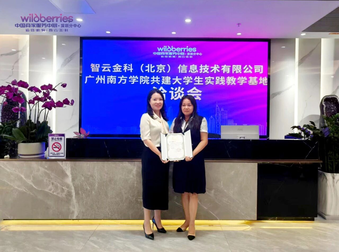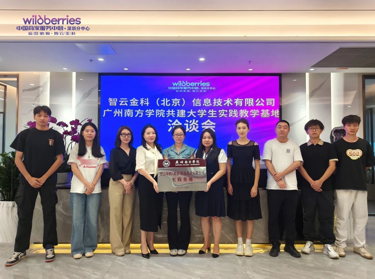 为深化产教融合,构建数字经济时代应用型人才培养体系,2025 年 10 月 15 日,广州南方学院商学院与智云金科(北京)信息技术有限公司(以下简称 “智云金科”)深圳分中心(深圳市星河双子塔西塔)实践教学基地挂牌仪式在深圳举行。南方学院电子商务专业叶敏老师,王星懿老师, 学生代表张宇彬、陈颖祥、莫子冲、梁耀文、文杰、阿米娜木以及智云金科深圳分中心代表人刘丽艳、跨境业务负责人等出席活动,共同见证校企合作深圳分中心挂牌仪式。