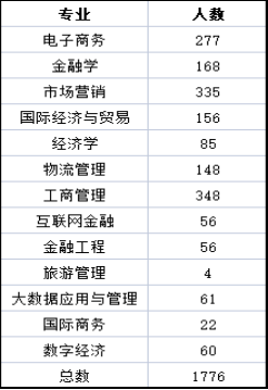 广州南方学院商学院2026届毕业生共有1776人,各专业人数如下: