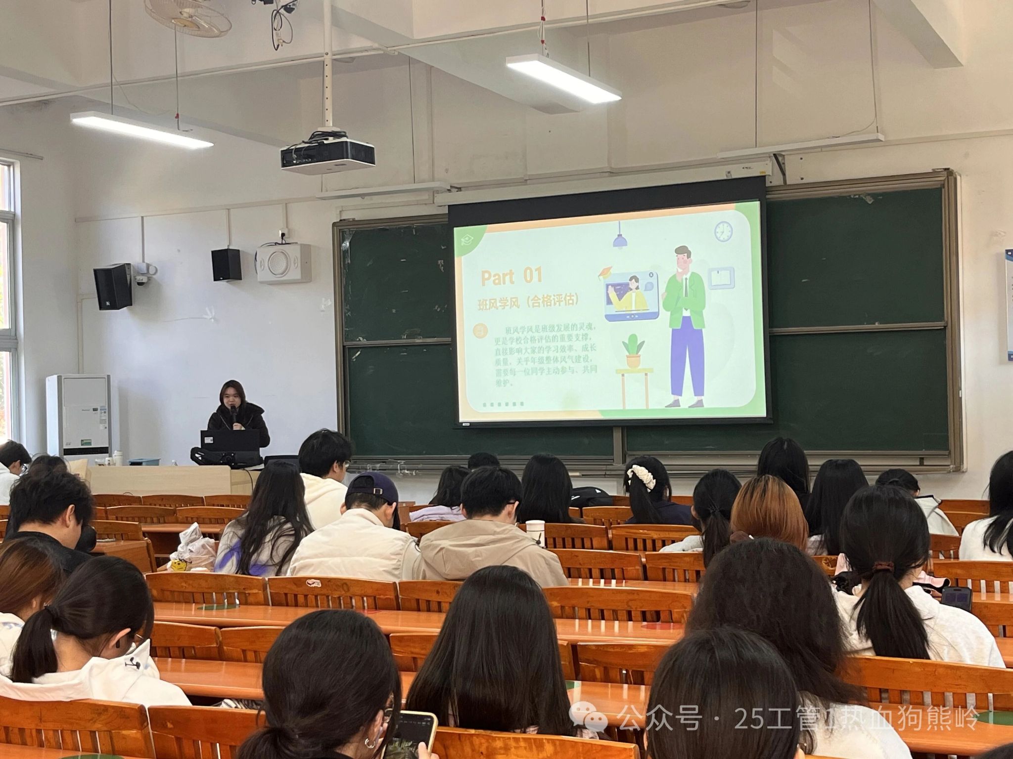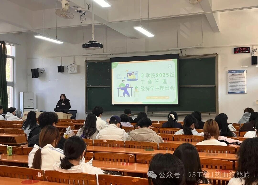 为进⼀步筑牢学⻛与⾏为规范防线,12⽉17⽇,2025级商学院经济学、⼯商管理主题班会顺利召开。本次会议围绕班⻛学⻛建设、⽂明上⽹规范、诚信考试教育三⼤核⼼内容展开,为同学们的校园学习⽣活划定准则 明确⽅向。