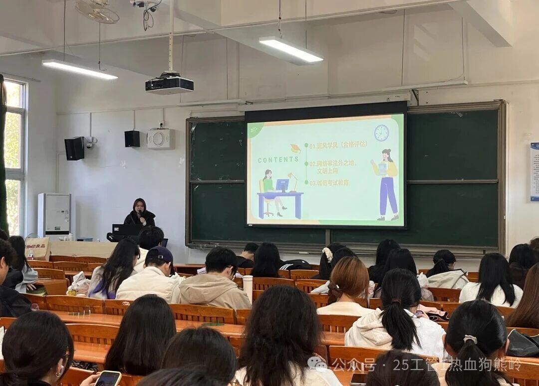 临近期末,诚信考试教育成为会议的重点内容。会议重申了考场纪律与作弊处罚规定,强调诚信是⽴身之本。考试不仅是对知识的检验,更是对品德的考验,希望同学们端正备考态度,认真复习,以真实的成绩展现学习成果,共同维护公平公正的考试环境。