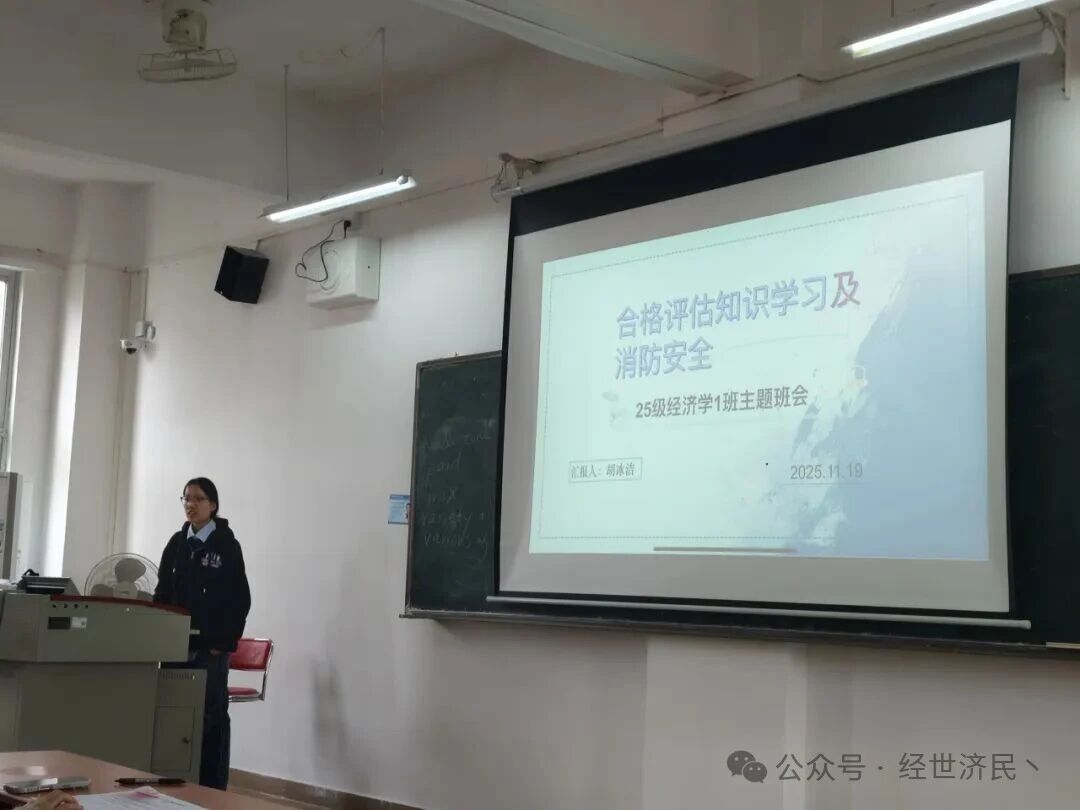 合格评估守初心,消防安全筑底线。11月19日经济学1班于九号教学楼401室开展11月主题班会,本次班会将为你解锁校园生活的双重守护指南——