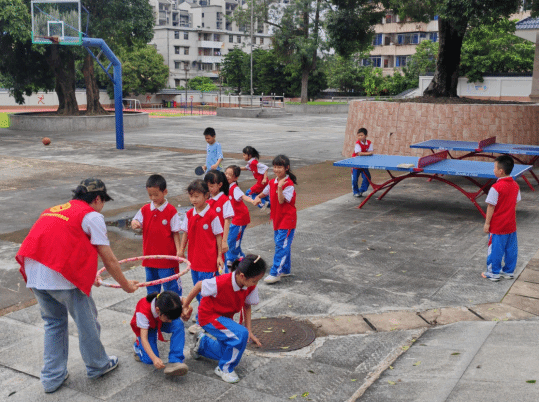 7月7日,太阳刚翻过东山,金色的光线像一条柔软的绸带,轻轻缠住了良口镇第三小学的操场。“融心相伴”三下乡小分队扛着呼啦圈、拎着秒表,把清晨的露水踩得叮当作响——今天,我们要给这里的同学们上一堂会呼吸、会发光的体育课。