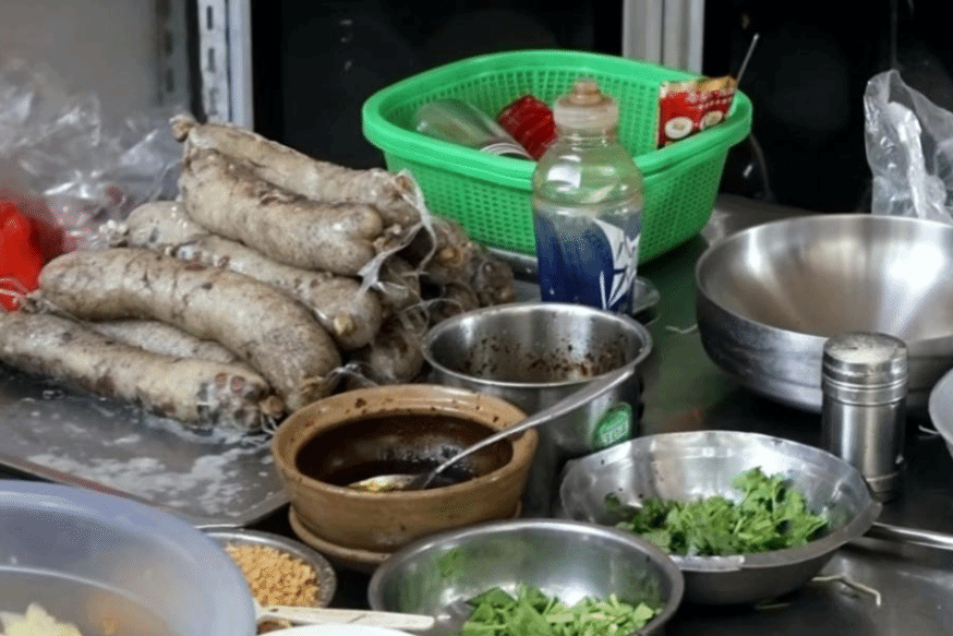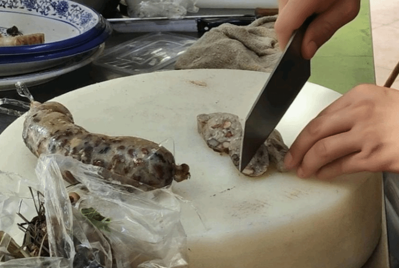 尝过腐乳鸡翅的咸香,我们挪步转进巷尾的猪肠涨糯米店。操作台里,圆滚滚的猪肠胀糯米码得齐整,一刀下去,糯米混着花生、香菇的馅料顺势铺开,油润的香气直往鼻尖钻。咬一口,米香裹着肠衣的韧劲在嘴里化开,每一分饱满里都藏着日复一日对美味的琢磨。灶间的热气漫上来,混着食物的香。虽然已至午后,仍能从这一口探得揭阳清晨的鲜活。