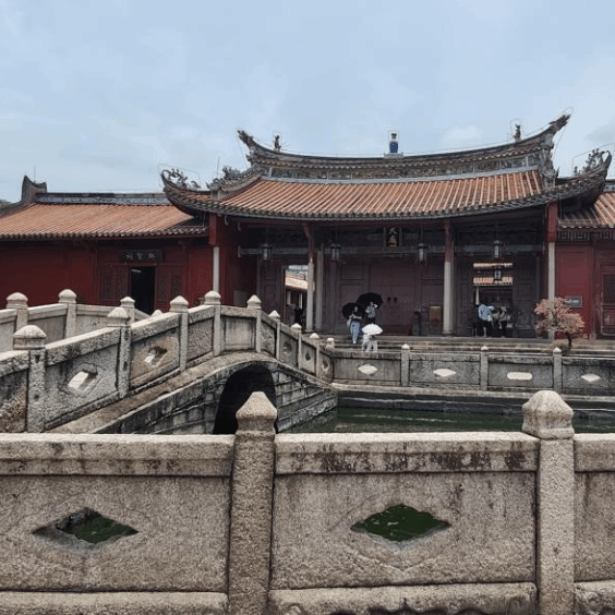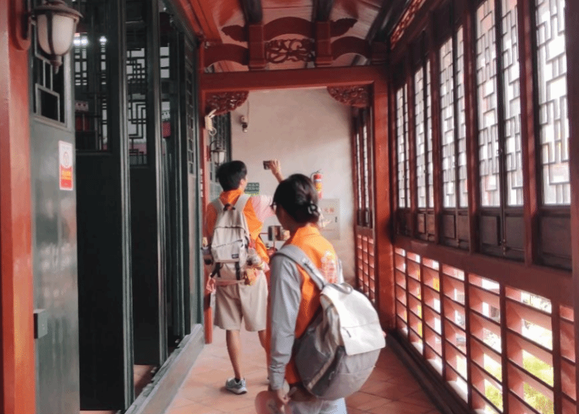 B组则前往参访揭阳学宫与城隍庙。晨光中的学宫有肃穆的通透——走进揭阳学宫的正门,有一个形似半月形的水池,寓意着鲤鱼跃龙门,象征着当时许多莘莘学子的愿望,揭阳学宫正殿的牌匾有着历史的厚重感。城隍庙的香火在晨光里更显厚重,显现出揭阳人民沉淀的人文气息。