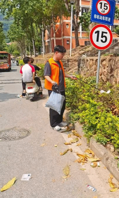 感谢每一位身披橙甲、躬身前行的志愿者,是你们让校园更洁净,让绿意更盎然。也愿每一位同学都能将环保意识融入日常,从点滴做起,让垃圾分类成为习惯,让文明之风吹遍校园的每一个角落。青山绿水,由我守护;洁净校园,你我共建。