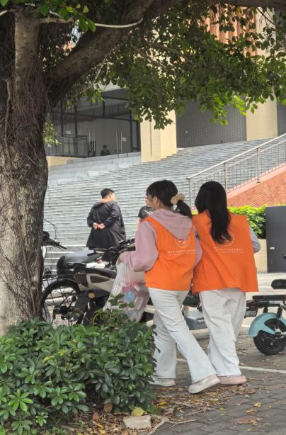 手持垃圾夹,肩挎垃圾袋,志愿者们穿梭在校园的每一个角落:俯身捡拾藏在树根下、灌木丛里的纸屑与杂物;细心分拣路面上的烟蒂、塑料瓶,让垃圾各归其位;不放过任何一处卫生死角,用双手还原校园本真的清新;从宿舍楼下的步道,到教学楼前的台阶,从树荫掩映的小径,到车水马龙的路边,每一次弯腰、每一次夹取,都是对 “洁净校园” 最朴素的践行。
