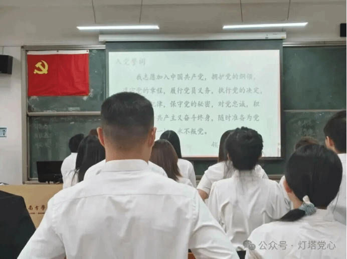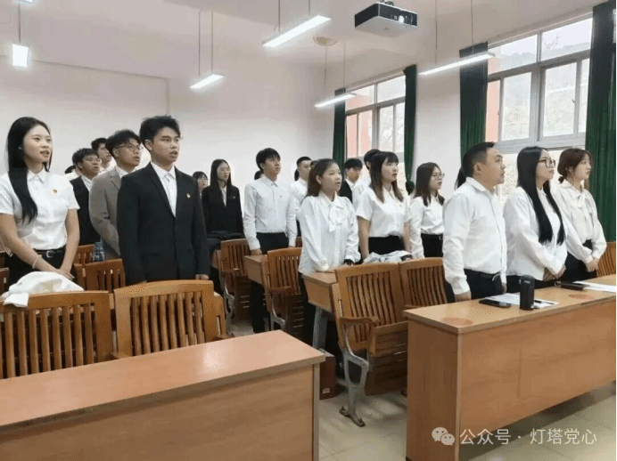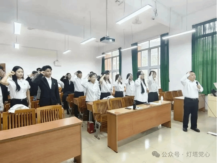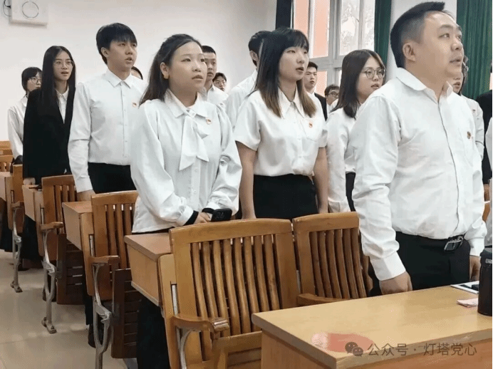 随后,在陆正祥老师的带领下,全体党员起立,举起右拳,齐声宣读入党誓词,充分彰显了大家为共产主义奋斗终身的坚定决心。