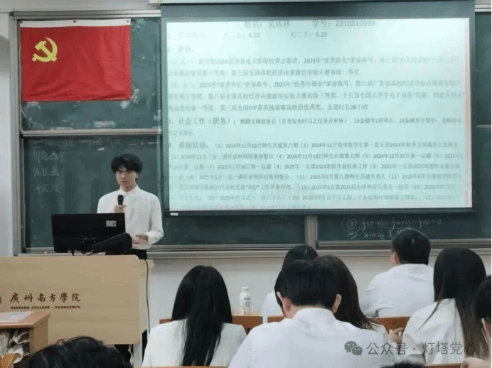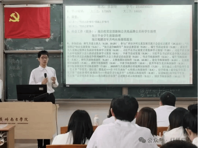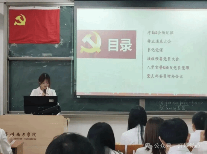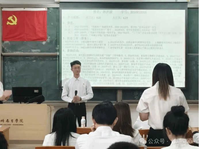 2025年11月12日12时30分,商学院学生第一党支部接收预备党员暨预备党员转正通表大会在8教202教室召开。商学院学生第一党支部书记陆正祥老师、党支部副书记杨丽茵老师、党支部全体党员及拟接收预备党员出席会议。
