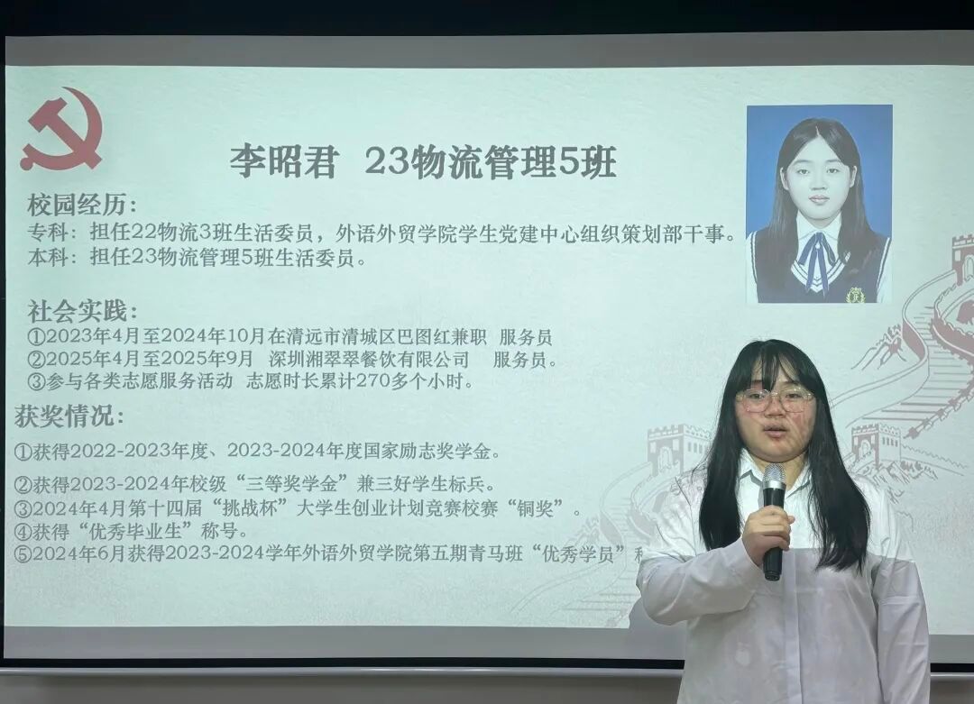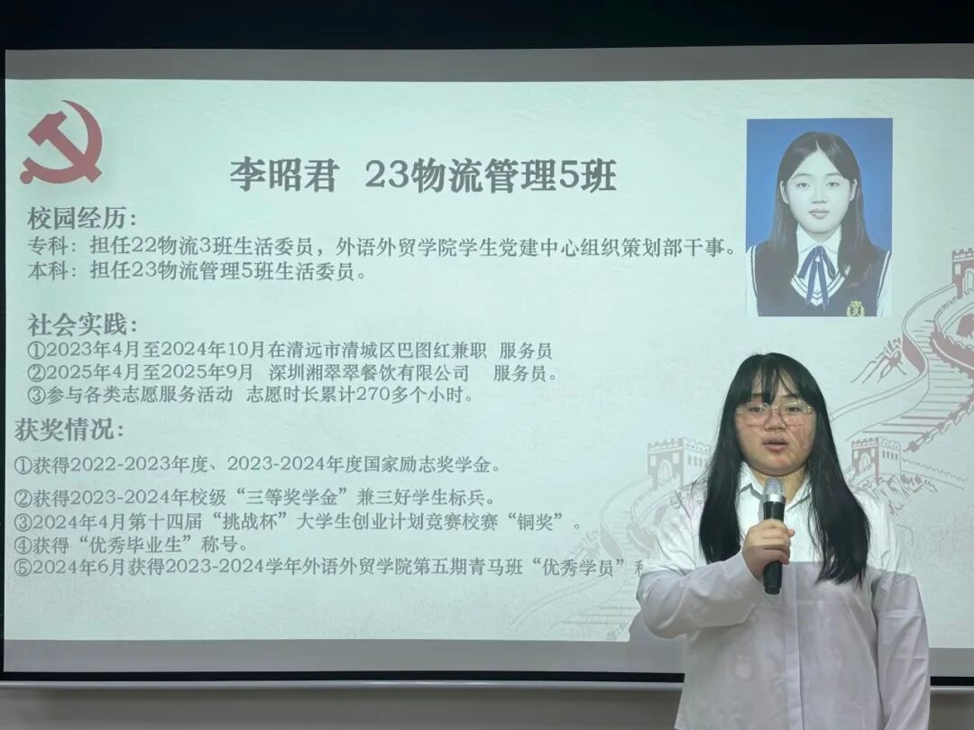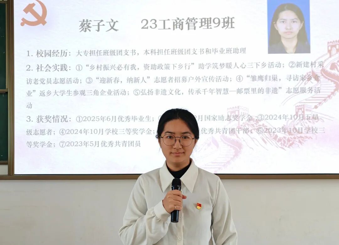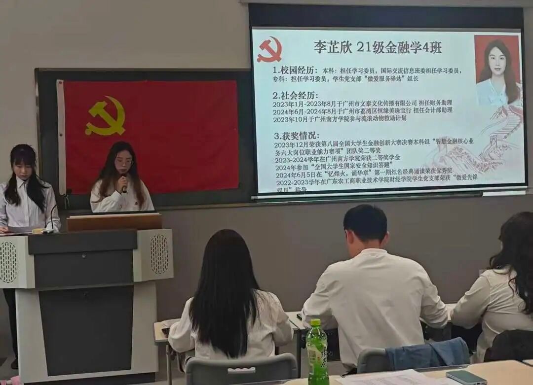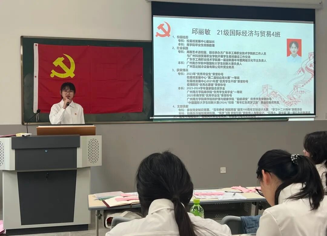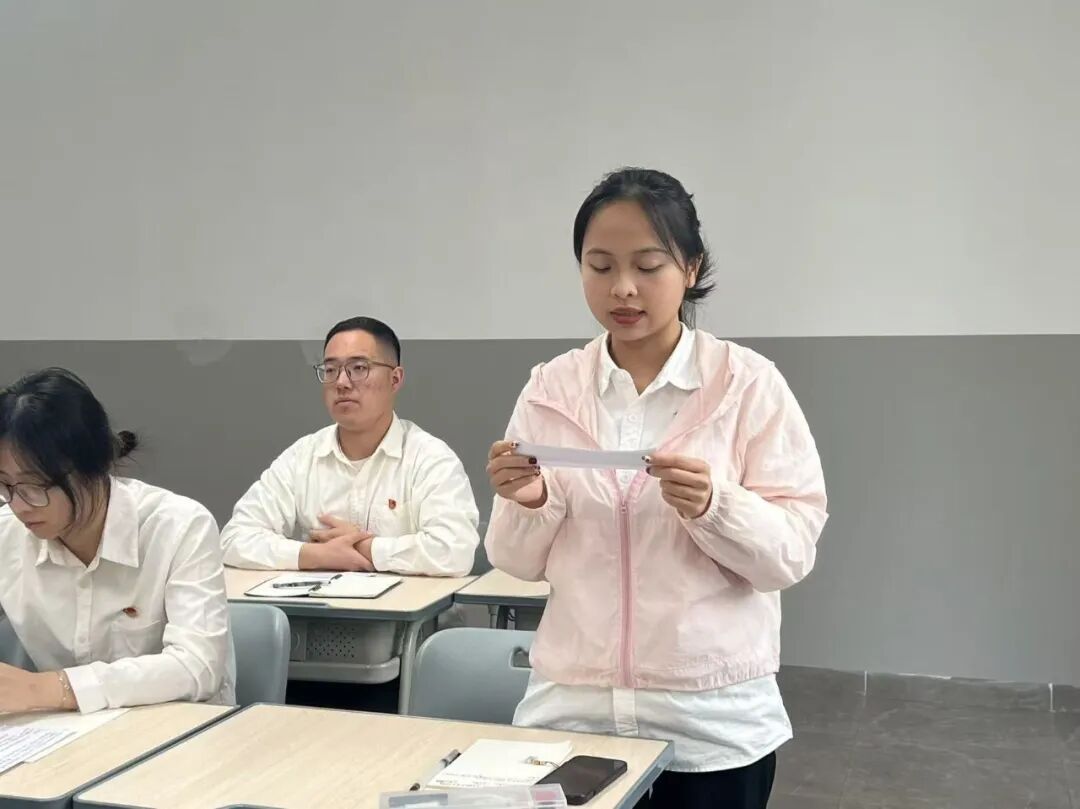 会议第四项议程,为进一步优化党支部班子结构、提升党支部履职效能,大会就新增补党支部委员相关情况进行通报。经党支部推荐、民主考察并报上级党组织批准,确定黄诗琪、梁金花、蔡子文、李昭君、刘晓敏、邓凤怡六位同志为党支部委员增补候选人。前期,六位候选人已分别向党支部党员大会作履职设想与个人情况说明。