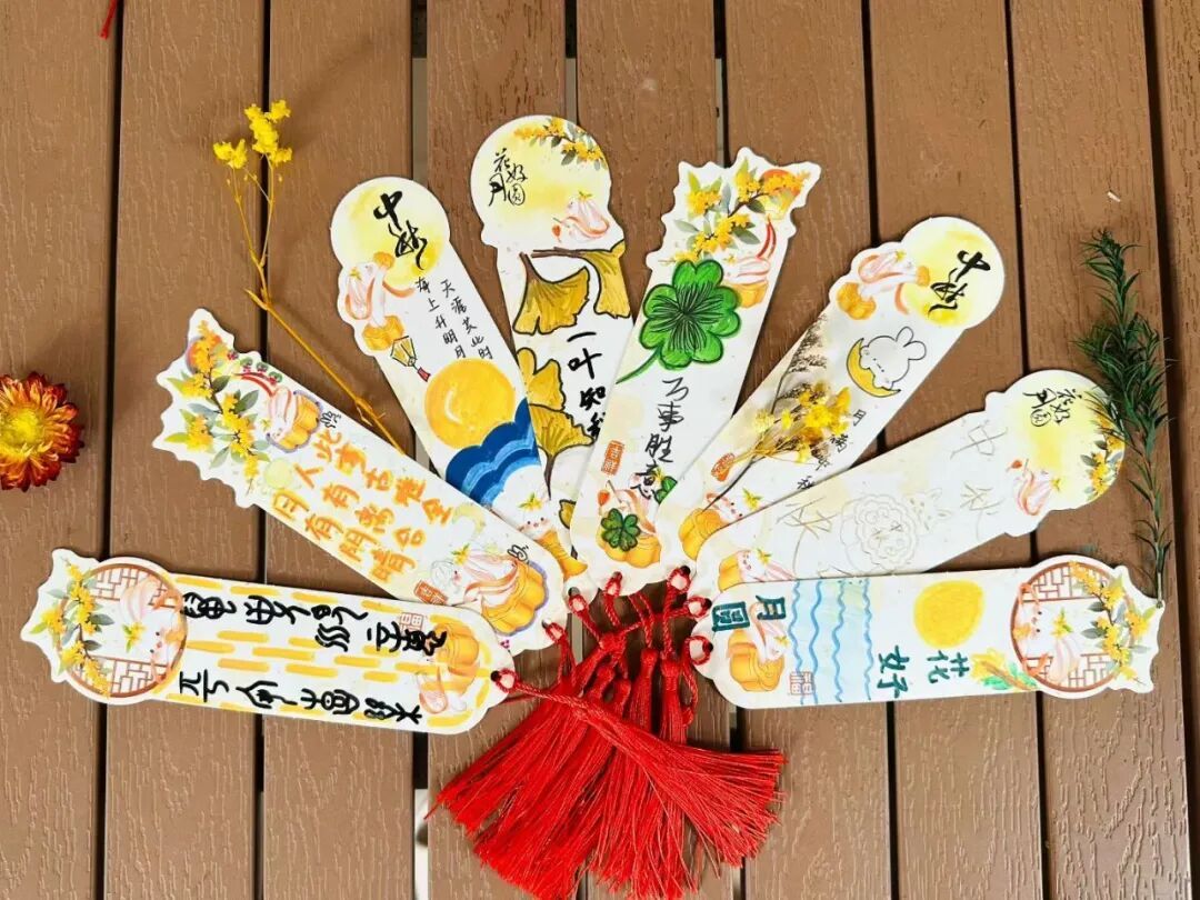 “中秋手工制作”环节人气高涨,师生们可自主选择制作花扇或书签。彩纸折叠、画笔勾勒、丝带点缀,一个个精致的花扇、一张张创意十足的书签逐渐成型。不少师生表示,手工制作不仅锻炼了动手能力,更让大家在创作中感受到传统工艺的魅力。