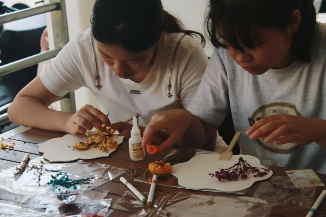 下午,活动接近尾声。全体工作人员分工协作,有序开展收尾工作:后勤组仔细清理现场垃圾,将帐篷、桌子、椅子等物资分类归还;小组工作人员整理学生作品并拍摄留恋。