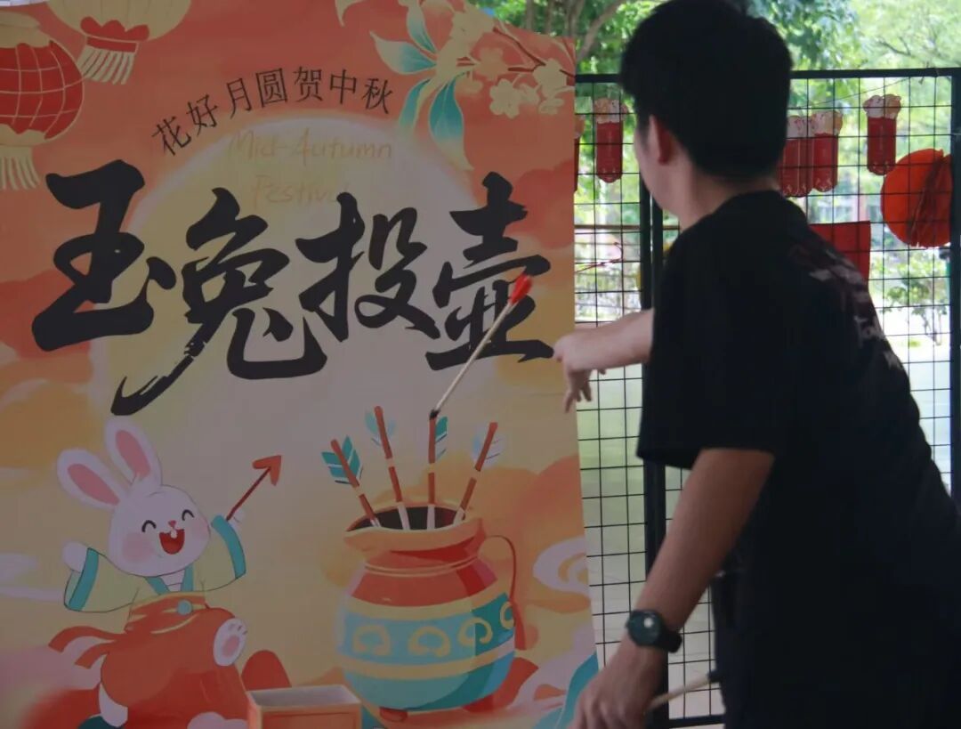 9月29日上午,工作人员提前抵达8教贩卖机旁,搭帐篷、挂灯笼、摆道具,有条不紊地完成前期准备。四大特色环节同步开展,现场人头攒动、热闹非凡。