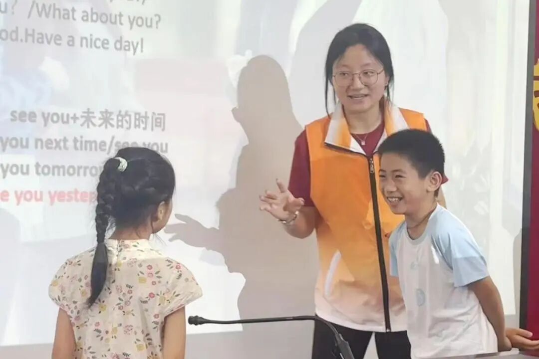 随后,小老师通过PPT展示,示范了如何用英语进行自我介绍。孩子们不仅学会了正确的发音,还掌握了如何用英语进行简单的交流。孩子们分组练习并上台展示,课堂氛围活跃。课堂的最后,孩子们通过英文来儿歌放松身心,同时巩固所学知识。