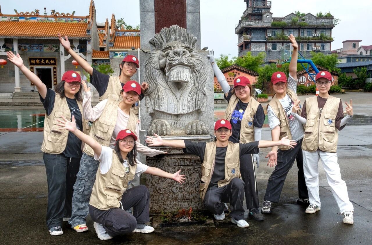 途中的惊喜,来自一位背着相机的摄影爱好者。他在村庄的榕树下目睹着我们往返各家赠送相框的情景。不经意间为我们的队员抓拍一下美好的瞬间。相逢即是缘,我们和这位摄影爱好者一起分享了我们这段时间的旅途,包括我们正在做“百千万工程”三下乡的项目。他赞赏我们的行为,并感叹大学生的青春与活力。随后并为我们团队拍摄了各具特色的照片。感谢他用镜头为我们定格温暖,感谢这份萍水相逢的理解与鼓励,更感谢即使还在淋雨依旧坚持拍完照片。这些照片会成为我们回望这段旅程时,最真实且鲜活的坐标。毕竟,不是每段路途上,都能遇到这样一位懂温暖、懂记录的同行者。