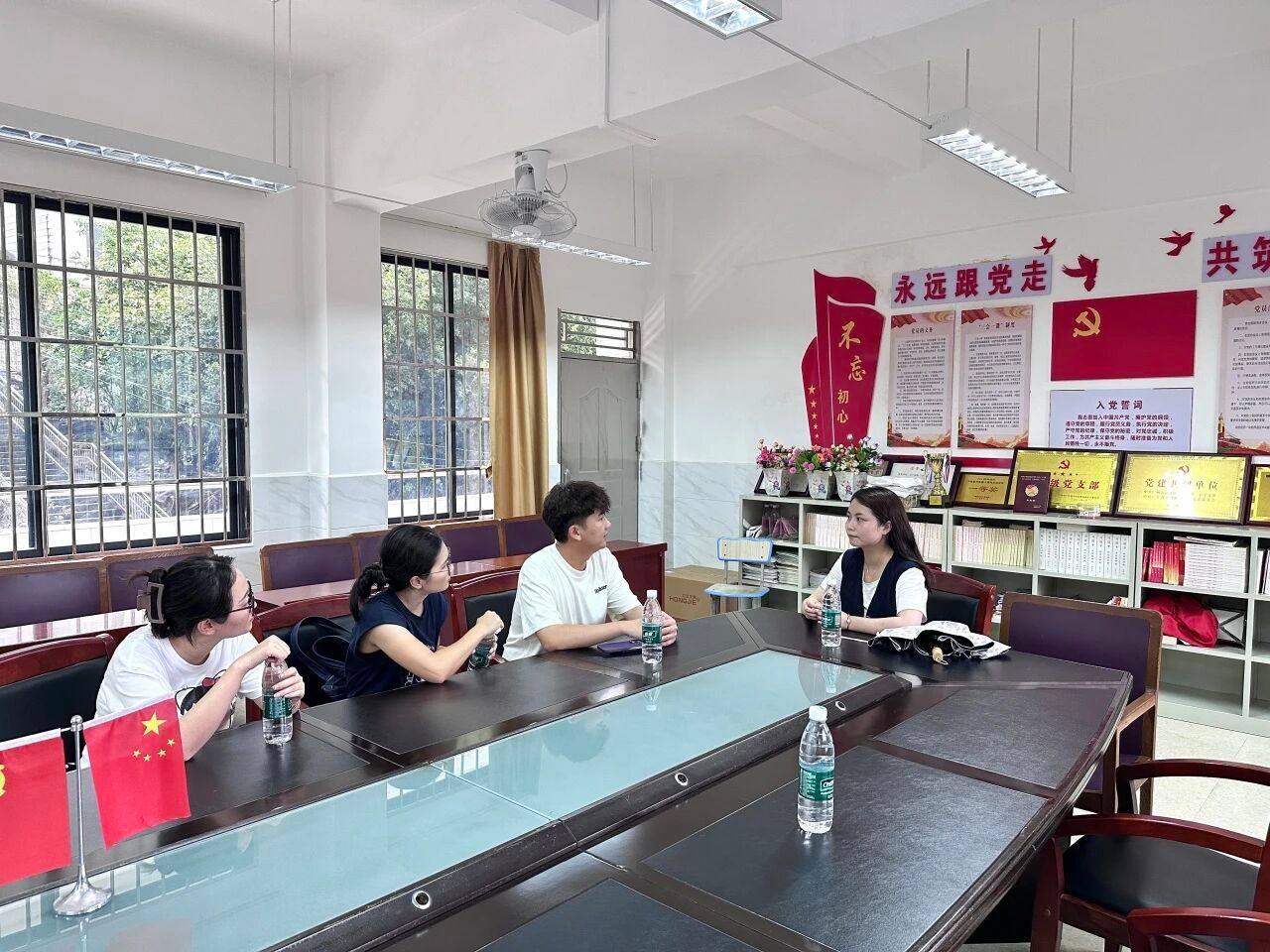 6月30日,融心乡伴突击队带队老师文俊杰老师,指导老师谢丹凤、全环老师与团队队长陈雅茹同学一同前往良口镇第三小学,通过实地走访并与良口镇第三小学薛老师进行深入沟通交流,详细了解学校学生的学习情况及注意事项,为即将开展的暑假“三下乡”社会实践活动做好进行前期准备。