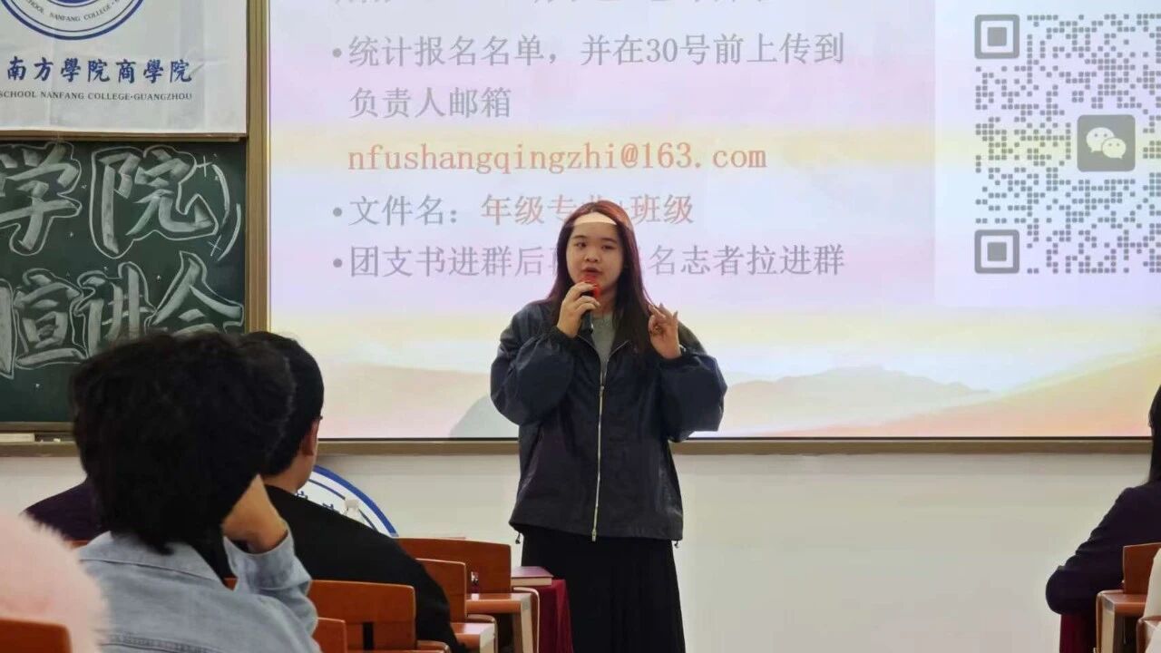 志愿库建设,凝聚青春力量。商学院青年志愿者服务中心服务部主要负责人梁杰辉同学就商学院志愿者库建设进行说明。商学院志愿者库面向全院热爱志愿的学生,每班至少推荐8人,团支书需在11月30日前按指定格式报送名单,入库学生优先获取志愿活动信息,携手践行志愿精神。