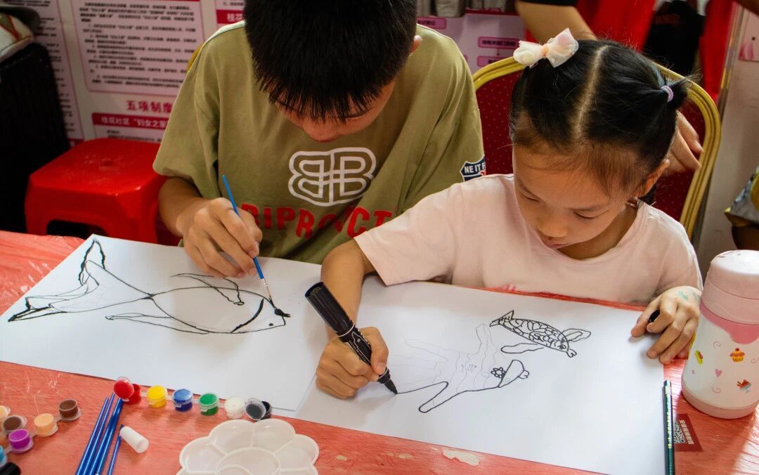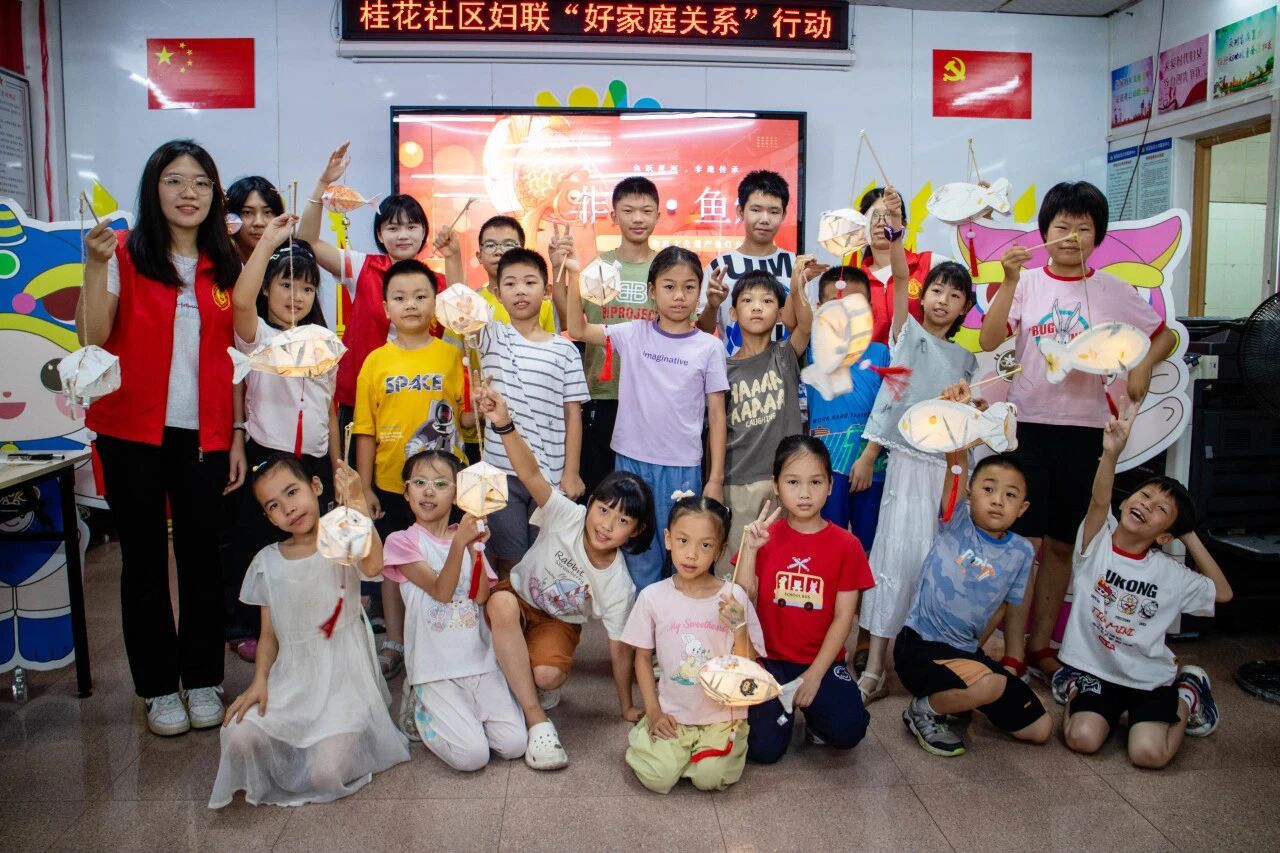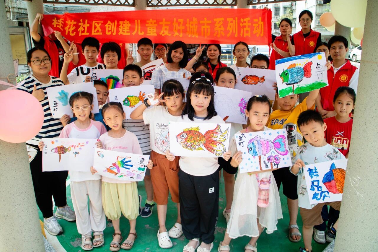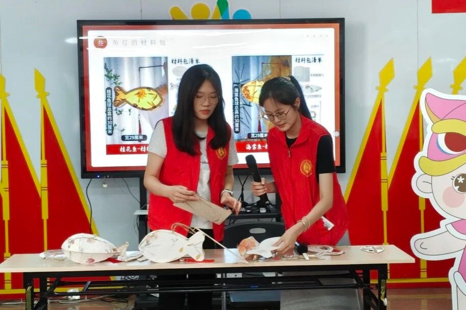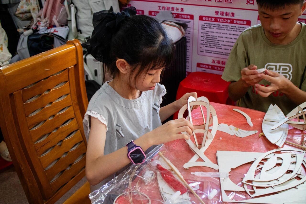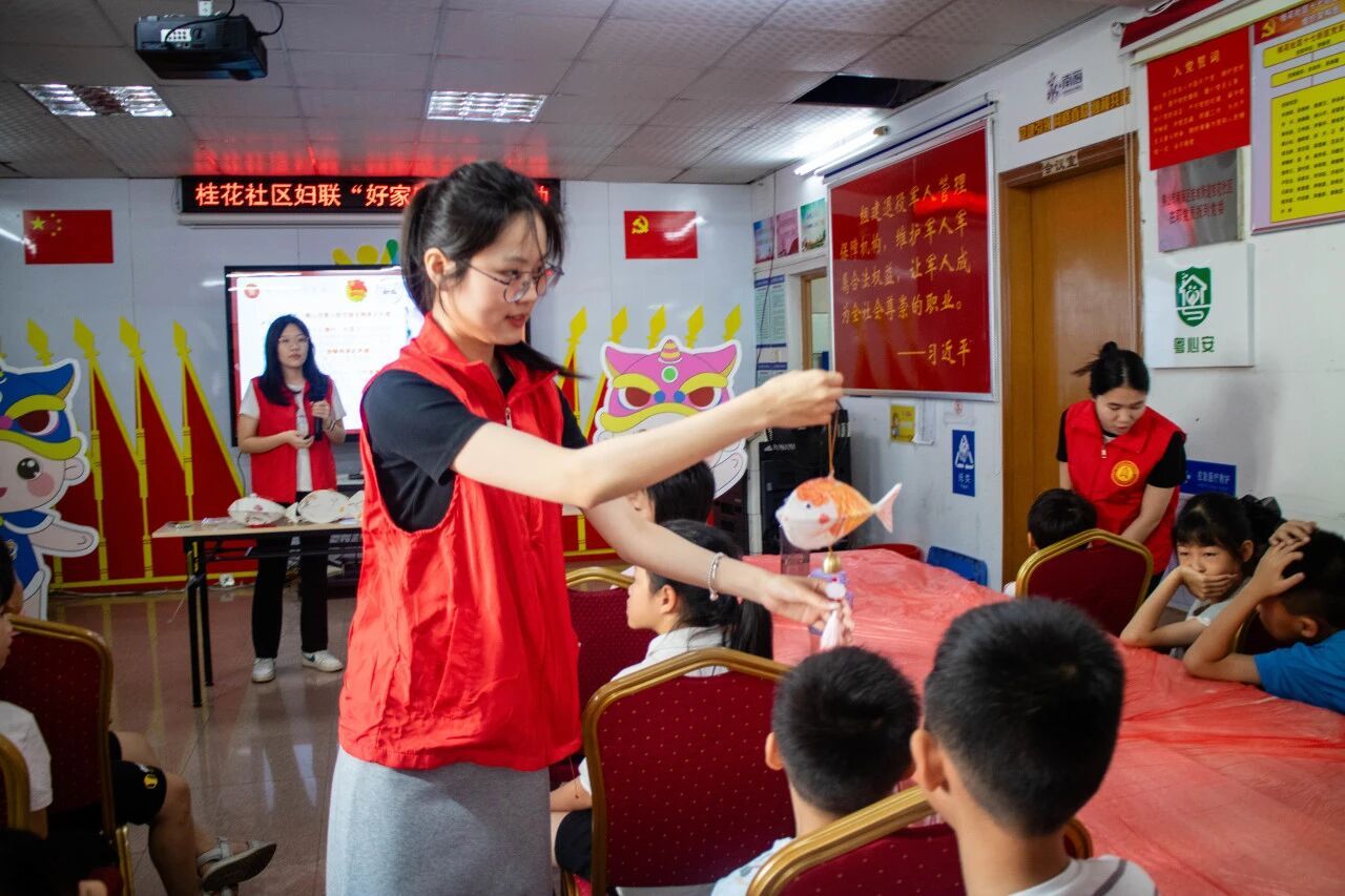 7月7日,“颐脉相承”突击队步履不停,走进桂花社区开展“鱼跃桂花,非遗传承”DIY鱼灯手工课。孩子们在一折一糊间读懂鱼灯里的传统故事,并将一盏盏承载祝福的鱼灯悬于社区凉亭,光影流转间,恰似高校智慧与社区烟火的温柔相拥,绘就出一幅双向赋能的动人画卷。
