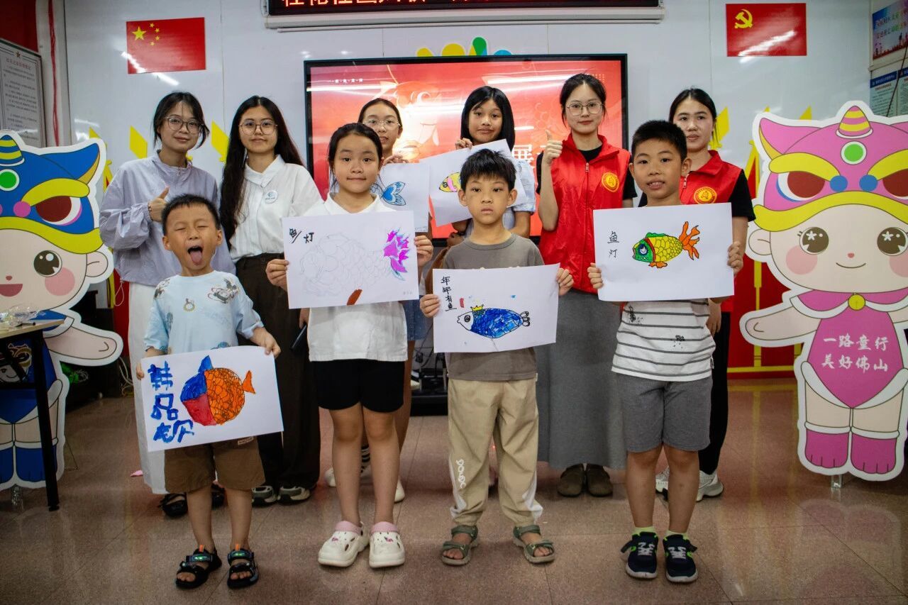 桂花社区的活动室内,突击队小老师用故事为孩子们打开时光之门。“很久以前,人们相信鱼灯能驱散黑暗,带来吉祥……”伴随着古老的传说,佛山鱼灯的历史脉络与地方文化渊源被娓娓道来。当孩子们得知这灵动的鱼灯竟是自己家乡佛山秋色巡游中的璀璨明珠,是祖辈们对丰饶生活的祈愿载体时,眼神中充满了惊奇与认同。
