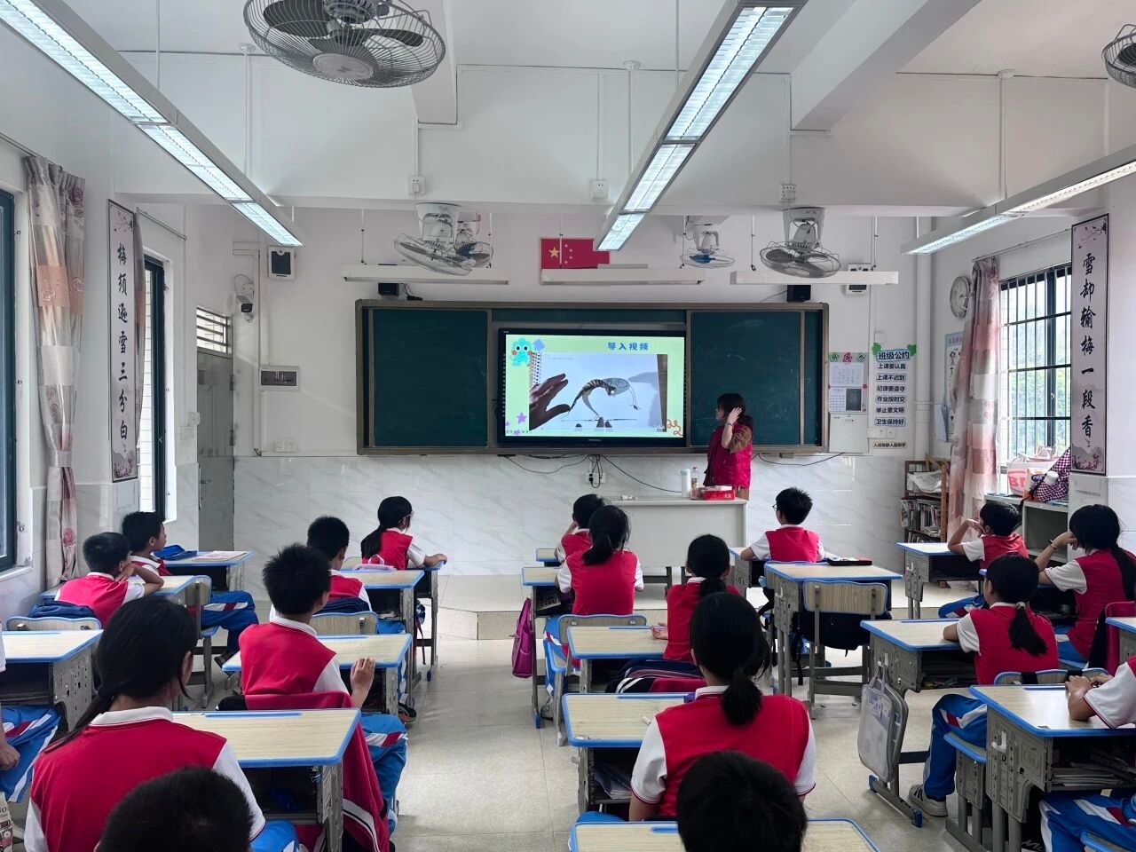 三下乡义教的第一天,在期待与些许慌乱中拉开了序幕。出发前反复核对教案时的紧张,在我们刚进入学校,就被一阵“红领巾海浪”包围,消散不少。孩子们蹦跳着冲到大门口,像一束束刚拆封的晨光,毫无保留地扑进我们怀里。那一刻,蝉鸣声、欢呼声混在一起,成了最动听的欢迎曲。见到孩子们纯真笑脸的那一刻,原本的担忧也淡去了许多。课堂上,原本担心的冷场被他们叽叽喳喳的提问打破,和队友分工时的小磨合也成了独特的初体验印记。