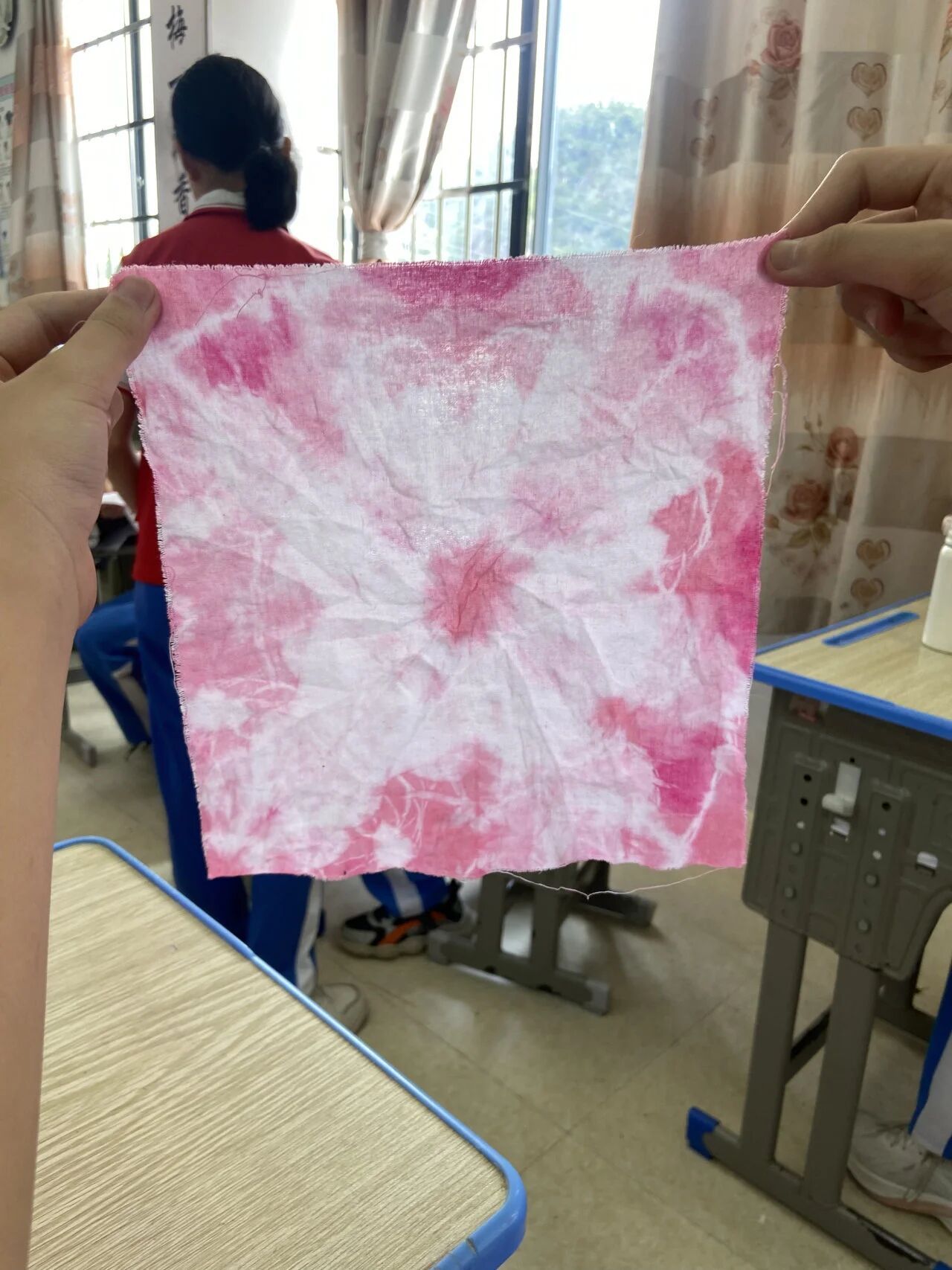 “原来双手也能施展魔术!”一个男同学举着扎染手帕和拓染方巾,郑重说道。这或许正是手工课的意义——无需复杂的工具,仅用一双手、一片叶、一缕线,便能把自然的美和创造之悦,深深镌刻于心间。