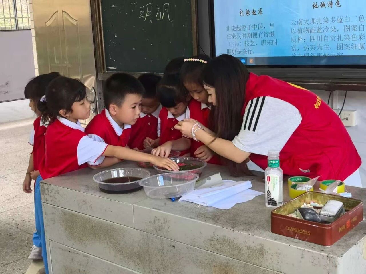 7月4日,当扎染的蓝白花纹遇上拓染的草木清香,这个夏天,良口镇第三小学的教室里,藏着一场关于色彩与自然的奇妙相遇。我们的三下乡义教手工课,就在“扎一束蓝,拓一片绿”的节奏里,拉开了序幕。