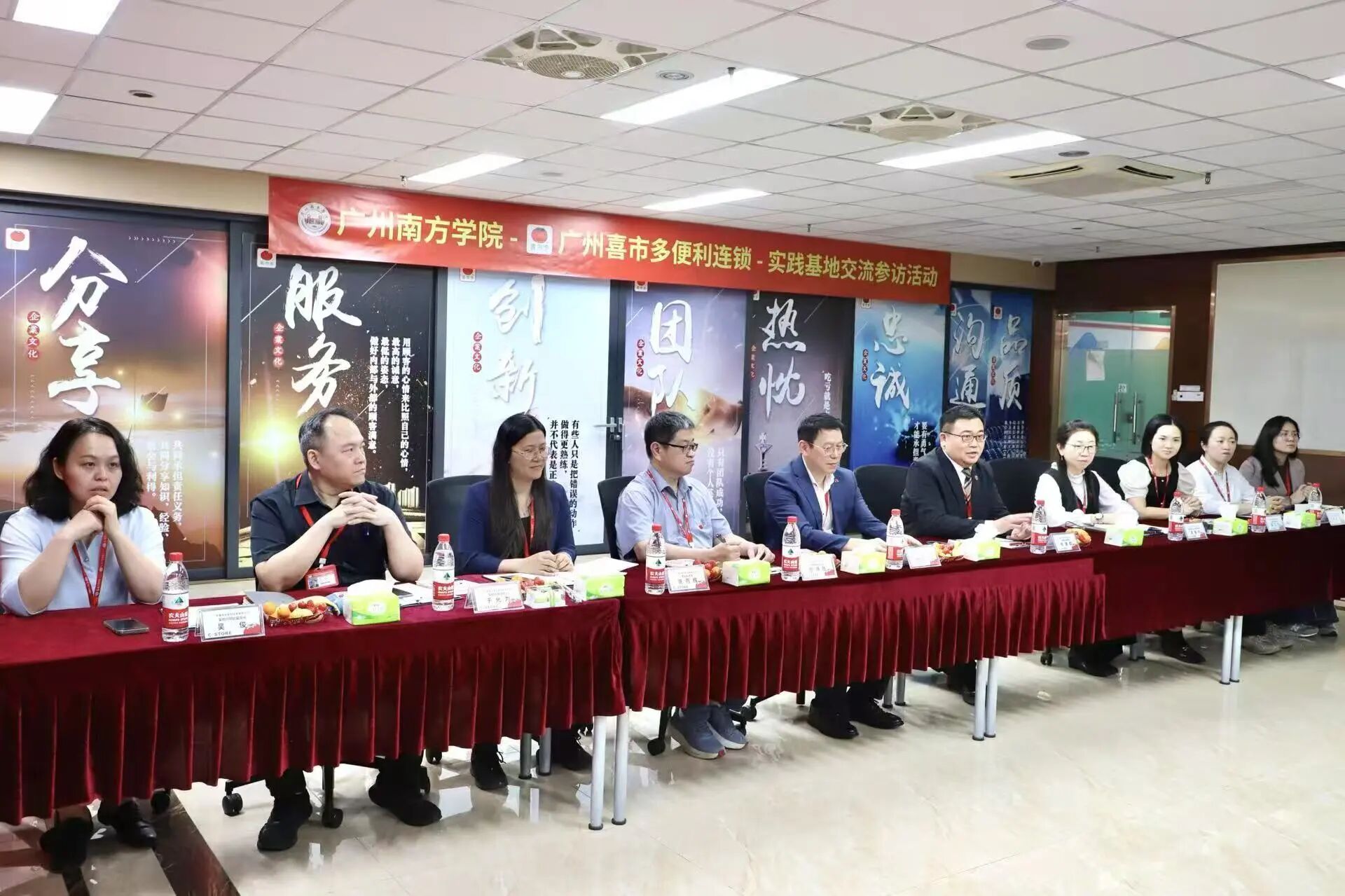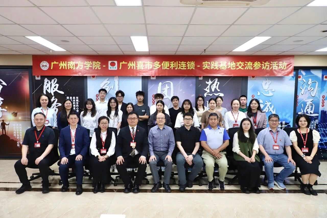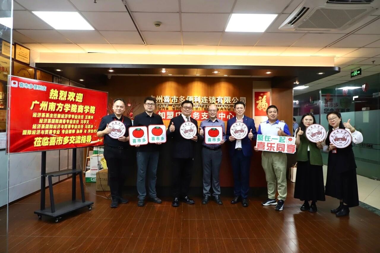为深化产教融合,助力学生高质量就业创业,2025年3月27日,广州南方学院与广州喜市多便利连锁有限公司联合举办实践基地校企交流活动。商学院经济系系主任兼经济学专业主任王家兴副教授、国际经济与贸易专业主任马夏冰老师、国际商务专业主任马学文副教授、国际经济与贸易专业陈婷老师等带领我院16位同学前往参加交流活动,与喜市多企业方领导齐聚一堂,共话校企合作新路径。
