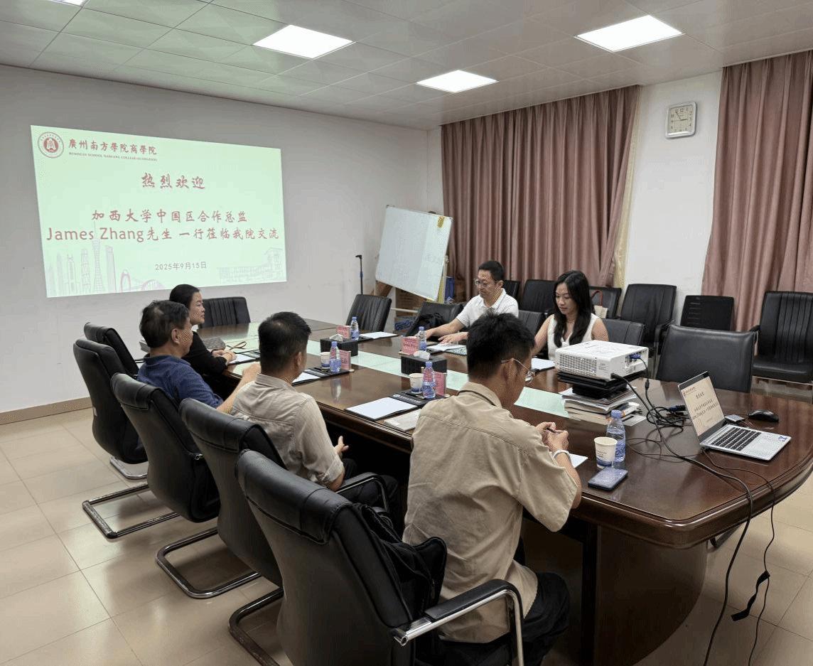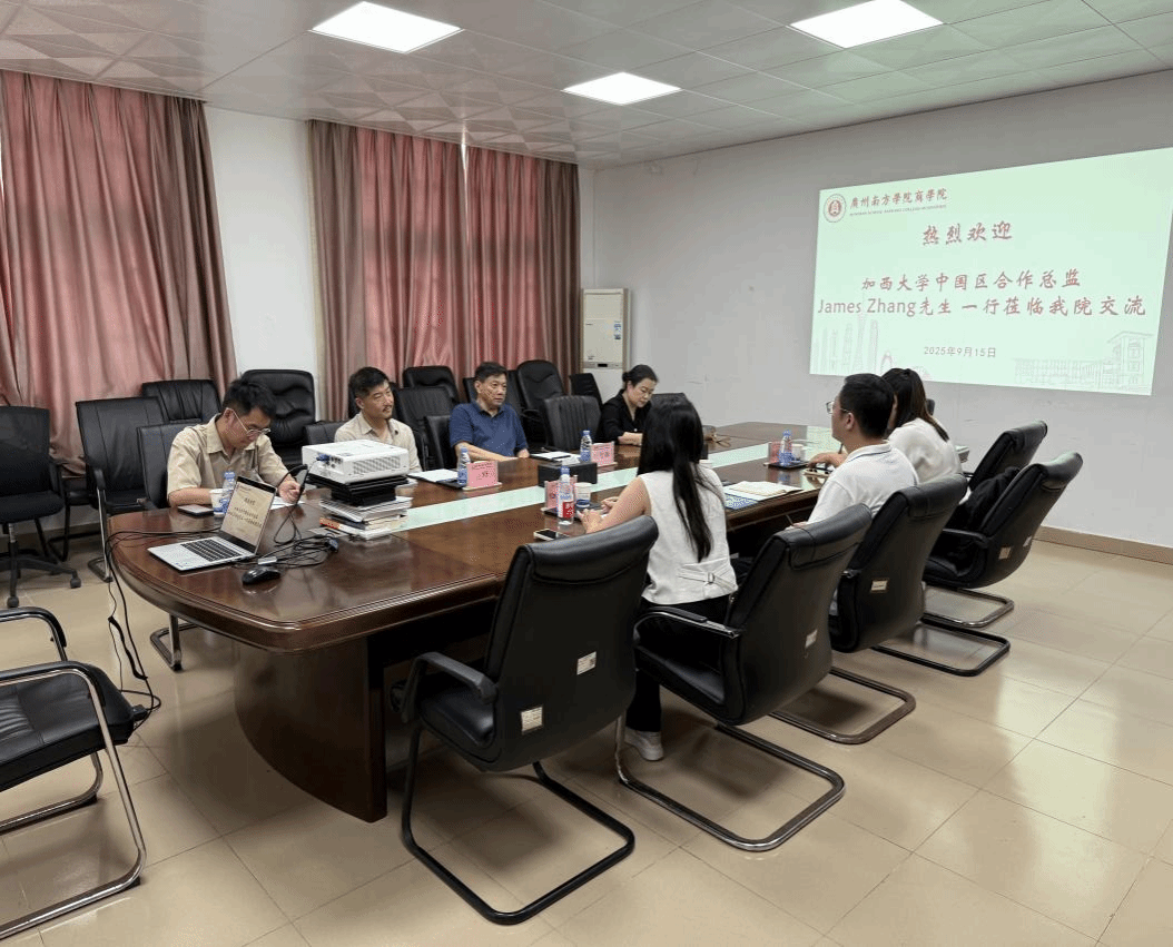 2025年9月15日,加西大学中国区合作总监James Zhang先生率代表团参访我院,双方就合作办学项目进行了深入研讨。我院院长叶龙森教授、副院长张玉冰教授及国际教育中心岳峰老师出席了本次座谈。