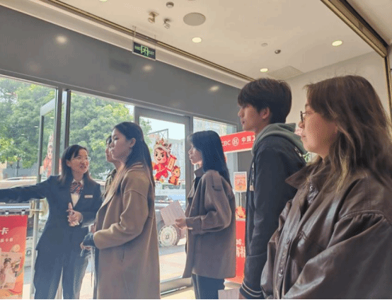 在中国工商银行(中大支行),理财经理李媛怡经理带领同学们参观了智慧银行服务区、财富管理中心与对公业务窗口,详细讲解了商业银行的基本职能、业务结构及数字化转型实践。在互动交流环节,以“现代银行业的变革与人才需求”为主题展开热烈讨论。李媛怡经理与郑敏慧老师一致强调,金融行业尤其注重逻辑思维能力、沟通表达能力、数据敏感度与合规意识,建议同学们在大学期间积极参加实践、关注行业动态、培养跨学科视野。