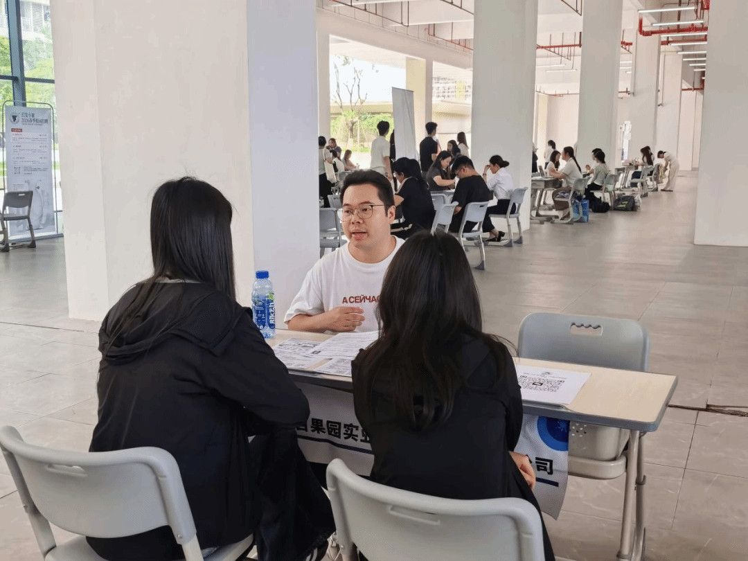 春风送岗,职引未来。为深化政校行企合作,拓宽毕业生高质量就业渠道,助力学子精准对接优质岗位资源,4月18日下午,“商学院2026年春季专场招聘会”在神岗教学区一楼大厅顺利举行。本次活动聚焦区域产业发展与商科人才培养特色,汇聚金融服务、快消与零售、人力资源服务、文化传媒、现代制造等多领域33家优质企业进校揽才,提供500多个就业岗位,为2026届毕业生打造了一场高效、便捷、精准的求职对接盛会。